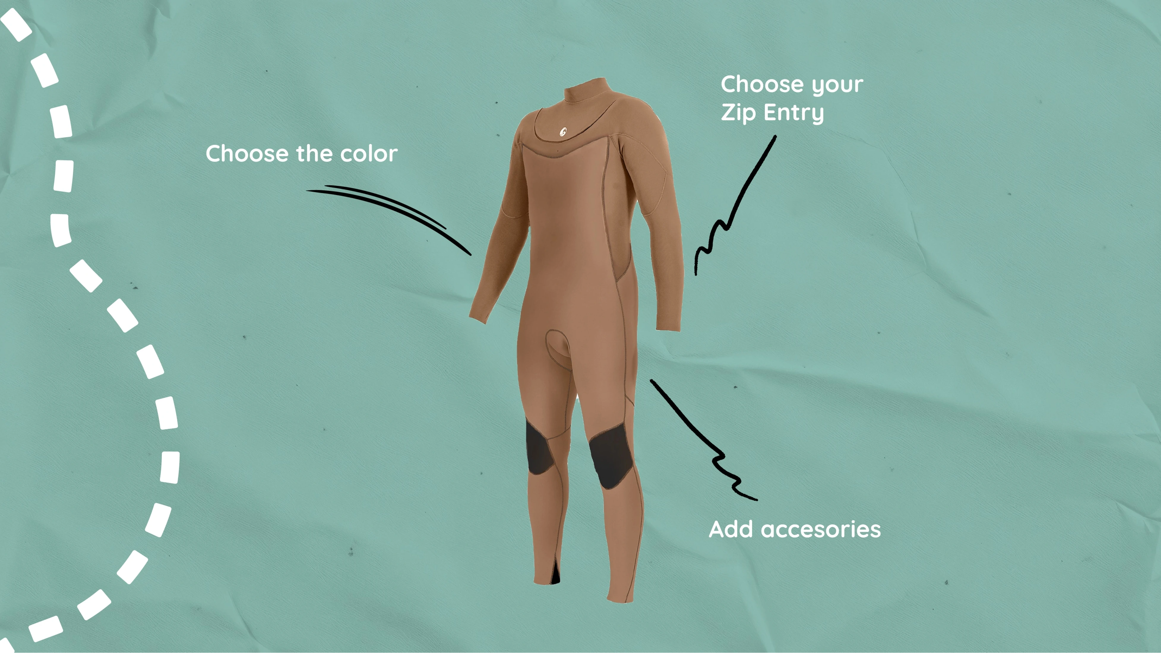 Build your own wetsuit in our 3D builder. Choose all of the features you want to add to your suit!