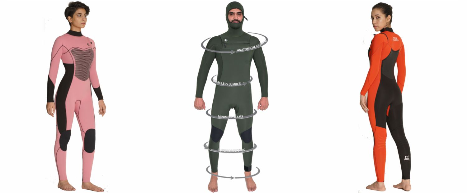 Ocean Tailored custom wetsuits, designed with anatomical panels and pre-shaped areas, feature a seamless lumbar design and minimal seams. This design approach ensures unrestricted movement and reduces seam stress, thereby extending the wetsuit's durability.